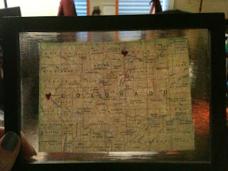 So since I have lived in 4 different states yet I love them all.... I figured why not take a shot at one of the really awesome craft projects that I found on pintrest. HERE! But my own little spin since I didn't wanna go spend a bunch of money on the glass pane that is used here. All I did was get four small frames, that I already had luckily, and superglued the outer edges of the glass to the inner ledge of the glass and had my own makeshift window pane.